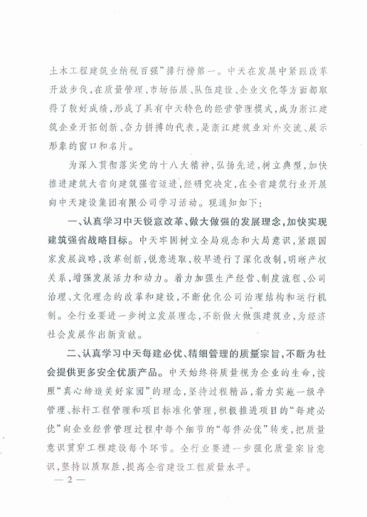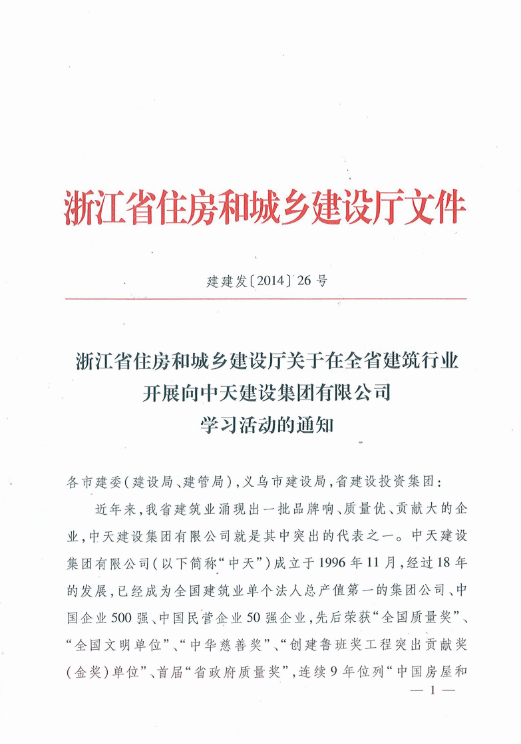 《浙江省住房和城乡建设厅关于在全省建筑行业开展向yd12399云顶集团建设集团有限公司学习活动的通知》
